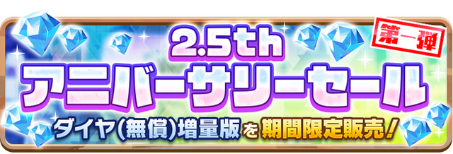 期間中、アニバーサリーセールを開催します。2.5周年を記念したお得なパックを購入することができます。