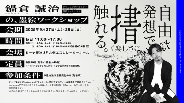 イベント名:~自由な発想で描く楽しさに触れる~ 墨絵ワークショップ会 期:2025年9月27日(土)・28日(日)