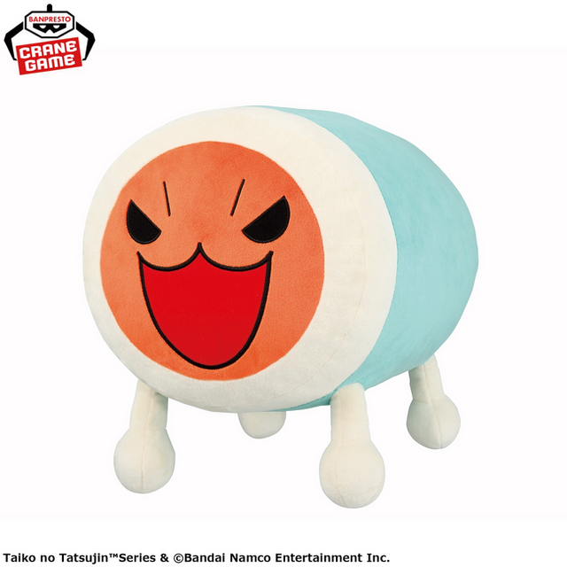 「太鼓の達人」のクレーンゲーム用ぬいぐるみが、ナムコ限定でさらに進化。 新しい表情のどんちゃんが、従来よりもひと回り大きな約35cmのサイズで登場します。