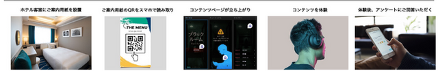 ホテル該当地域におけるアーティストやアイドルLIVEとのコラボによる、部屋でのイマーシブLIVEコンテンツ体験や、謎解きファン向けのARG(Alternate Reality Game / 代替現実ゲーム)没入体験イベントなど、ホテルが単なる宿泊施設ではなく、IPファンの推し活サポートを中心としたイマーシブ体験の“舞台”となり、新たな観光・宿泊価値を創出する未来へ、推進してまいります。