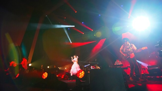 もはや“ギグ”と称せた熱狂の昼公演に対して、初披露の新曲の多さからか、夜公演は“ショーケース”に近い見せ方に。純白のドレスワンピースに衣装が変わり、披露するは『Re:birthday』リード曲「Minty Smile」から。