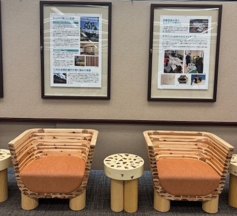当社は、京都芸術大学がデザインを手がけた北山杉を使用したソファなどを製作し、2025年9月に当社京都支店・京都四条支店へ設置しました。