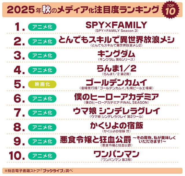 【2025年秋のメディア化注目度ランキング】1位~10位