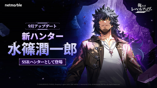 ネットマーブルは、スマートフォン及びPC向け最新アクションRPG『俺だけレベルアップな件:ARISE』(略称:俺アラ、開発:Netmarble Neo)において、9月26日(金)に、新SSRハンター「水篠潤一郎」を追加するゲームのアップデートを実施いたしました。