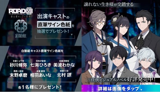 株式会社ブシロード(本社:東京都中野区、代表取締役社長:木谷高明)は、ビジュアルノベルゲーム「ROAD59 -新時代任侠特区- 摩天楼モノクロ抗争」発売を記念して出演キャストの直筆サイン色紙が抽選で当たるキャンペーンを開催いたしました。