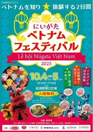 新潟県は、県民の皆さまにベトナムの文化を身近に体験していただくとともに、県内在住のベトナム出身の方々との交流を深めることを目的に、「にいがたベトナムフェスティバル2025」を開催いたします。