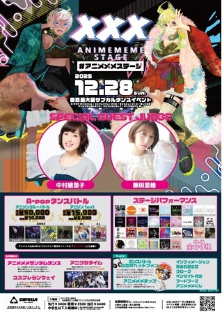 アニソンエンターテインメントプロジェクト「アニメメメ」は、関西最大級のダンス&カルチャーイベント「アニメメメステージ 6」を大阪・GORILLA HALLにて2025年12月28日(日)開催することをお知らせいたします。