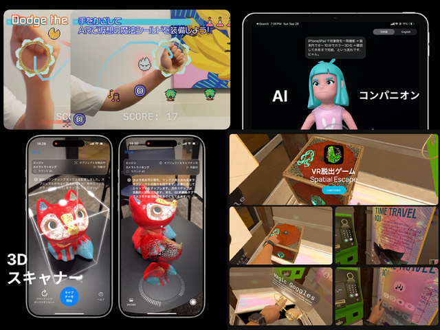 来場者は、手かざしで遊べるARゲーム「Pixel Ninja」、英語・日本語で会話できる“アニメAIコンパニオン”をはじめ、Koemo(オンデバイス字幕・翻訳)、3Dスキャナー、Apple Vision Pro向けゲームなど、当社の最新AR/AI体験に触れていただけます。