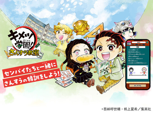 『鬼滅の刃』公式スピンオフ漫画『キメツ学園!』のキャラクターが小学校中高学年向けの算数を教える学習アプリです。竈門炭治郎をはじめ原作に登場する数多くのキャラクターたちが世界観たっぷりのセリフで、家庭教師のようにしっかり丁寧に算数を教えます。