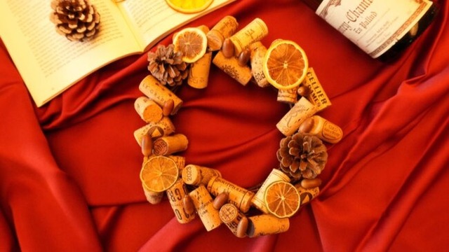 子どもから大人まで楽しみながら環境問題を考え、廃棄されるコルク栓や食材をアートとして生まれ変わらせ、世界に一つだけのクリスマスリースを制作できる体験です。