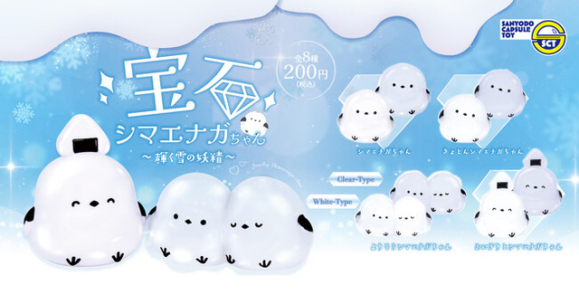 『宝石シマエナガちゃん~輝く雪の妖精~』全8種・200円(税込)は、ホワイトタイプとクリアタイプの2カラー全8種をご用意しました。