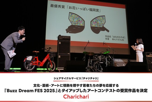 シェアサイクルサービス『チャリチャリ』を運営するチャリチャリ株式会社(本社:福岡市中央区、代表取締役社長:家本 賢太郎、以下「チャリチャリ」)は、未来を担う若者の力になりたいという強い思いをもった福岡の企業・団体とタッグを組み開催する、みんなのまちの文化祭『Buzz Dream FES 2025』とタイアップし、アートコンテスト『Charichari Buzz Dream Award』を実施しました。
