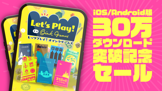 そして2025年9月、iOS/Android版のダウンロード数が30万を突破しました。iOS/Android版 30万ダウンロードの突破を記念して、オインクゲームズは2025年9月30日(火)、「レッツプレイ!オインクゲームズ」のセールをスタートしました。期間は2025年10月6日(月) 23:59までの1週間。