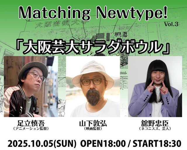株式会社KADOKAWA(本社:東京都千代田区、取締役 代表執行役社長 CEO:夏野剛)は、2025年10月5日(日)に月刊ニュータイプ創刊40周年記念イベントシリーズ「Matching Newtype! Vol.03 大阪芸大サラダボウル」を新宿・ロフトプラスワンにて開催いたします。