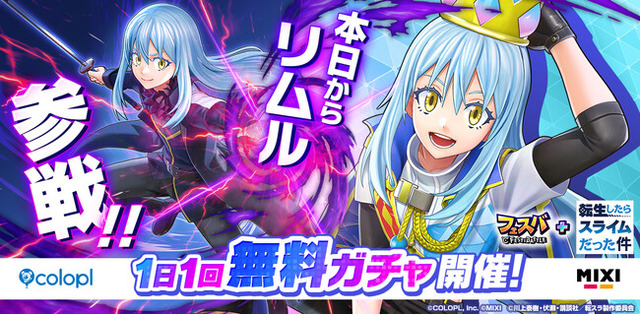 本日9月30日(火)より、『フェスバ+転生したらスライムだった件』イベントを開催しております。本イベントではTVアニメ『転生したらスライムだった件』より、新たなヒーローとしてリムル=テンペスト(CV:岡咲美保)が参戦します。リムルはガチャでバトルウェアを解放すると自由に操作できるようになります。ヒーローエピソードは期間限定でどなたでもお楽しみいただけます。