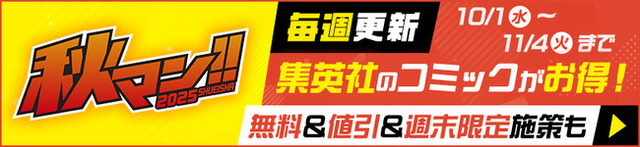 こちらから、開催中の「秋マン!!2025」キャンペーンの各特集、対象作品がご覧になれます。