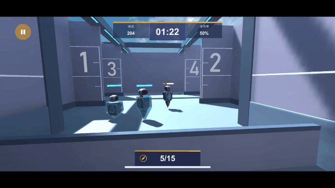スマートフォンの画面が銃の動きとリンクして画面が移動し、ターゲットを撃ち抜きます。
