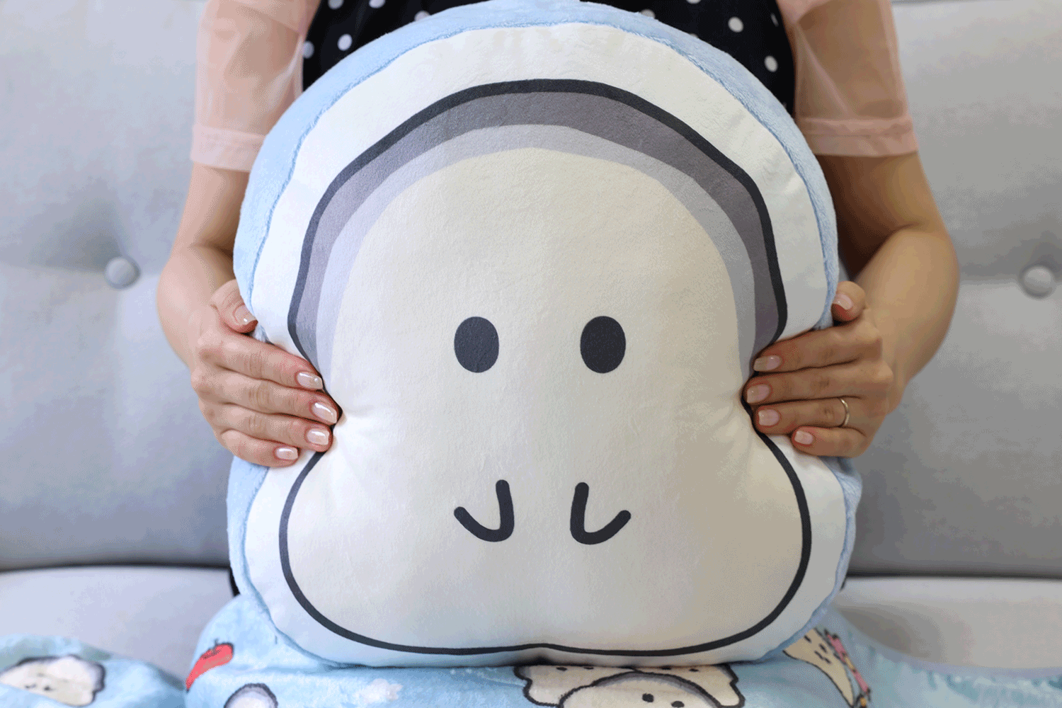 もちもちクッションの中にはブランケットが収納できちゃいます♪