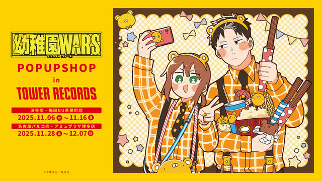 タワーレコードは、タワーレコード渋谷店、名古屋パルコ店、梅田NU茶屋町店、アミュプラザ博多店の4店舗で「『幼稚園WARS』 POP UP SHOP in TOWER RECORDS」を11月6日(木)から順次、期間限定で開催します。