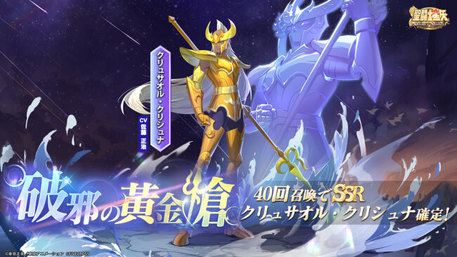 株式会社ファイブクロスは、スマホRPGゲーム『聖闘士星矢 Galaxy Soldiers』(聖闘士星矢GSS)において、「クリュサオル・クリシュナ」が登場する期間限定イベントを開始したことを発表いたしました。