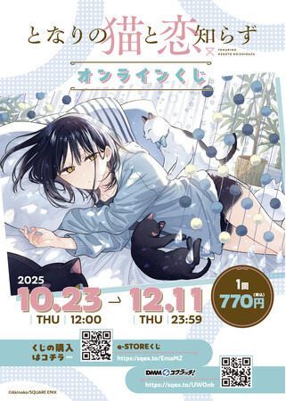 本日2025年10月23日正午より、スクウェア・エニックス e-STORE、DMMスクラッチにて『となりの猫と恋知らず』(あきのこ先生)のオンラインくじの予約受付が開始いたしました。