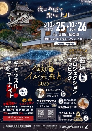 地元ゆかりの武将・明智光秀が築いた福知山城と、その麓にあるゆらのガーデンを舞台に、光と音が織りなすナイトイベント 「福知山イル未来と2025」 を2025年10月25日(土)・26日(日)に開催します。