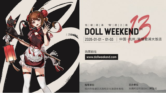 中国・粤港澳大湾区(グレーターベイ)、2025年10月16日 - 世界中のアニメ着ぐるみドール愛好家が待ち望む「Doll Weekend 13」(以下DW13)が、2026年1月1日から3日まで「杭州市銭塘君澜大飯店」で開催されます。世界最大のアニメ着ぐるみドール大会として、今回の規模もさらに一層の高みを目指します。江南の絵画のような美しい土地を舞台に、杭州西湖の美しさを借りて、二次元、コスプレ、着ぐるみ文化を愛する世界中の友人たちを、この年度最大のイベントに招待いたします。