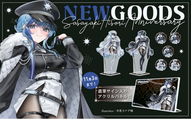 クリエイターグッズの企画・製造・販売を支援する株式会社メディアリンクは、VTuber「紗彩木ひそり」の活動6.5周年を記念したアニバーサリーグッズを、公式オンラインストア「HISOSTORE(ヒソストア)」にて販売開始いたします。