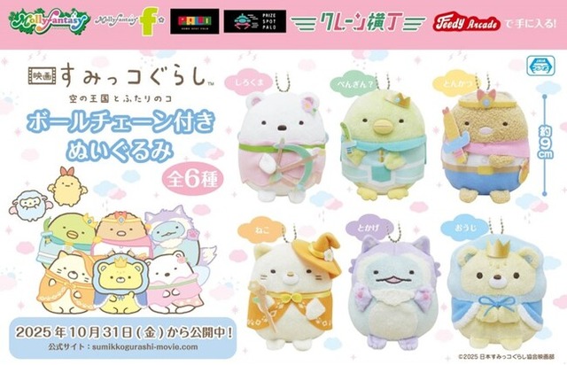 株式会社イオンファンタジー(本社:千葉県千葉市、代表取締役社長:藤原徳也、以下、当社)は、2025年10月31日(金)公開の『映画 すみっコぐらし 空の王国とふたりのコ』のプライズ用景品「ボールチェーン付きぬいぐるみ」を、「モーリーファンタジー」「PALO」をはじめとするアミューズメント施設、オンラインクレーンゲーム「モーリーオンライン」にて10月31日(金)より順次展開いたします。
