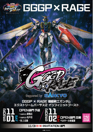 株式会社SANKYO(本社:東京都渋谷区 代表取締役社長:小倉 敏男)は、2025年11月1日(土)~3日(月・祝)に開催される「GGGP × RAGE 機動戦士ガンダム エクストリームバーサス2 インフィニットブースト Supported by SANKYO」に協賛することをお知らせいたします。