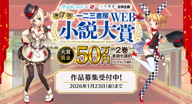 一二三書房の各レーベルと小説投稿サイト『小説家になろう』との共同で開催する、第7 回『一二三書房 Web小説大賞』が2025年10 月24日よりスタートいたしました。