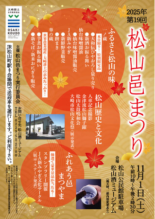 2025年11月1日(土)、松山酒ミュージアム(宮城県大崎市松山)にて『第19回 松山邑まつり』を開催します。