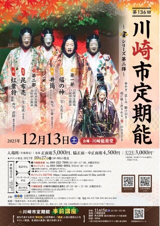 公益財団法人川崎市文化財団主催、『第136回川崎市定期能<観世流梅若会>~宴シリーズ第二弾~』が2025年12月13日 (土)に川崎能楽堂(神奈川県川崎市川崎区日進町1-37)にて上演されます。