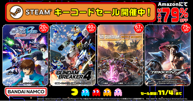 株式会社バンダイナムコエンターテインメントがAmazonにてSTEAMキーコードセールを開催したことをお知らせいたします。