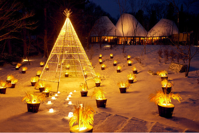 会場となるPOKO POKO広場には、収穫した稲穂を乾燥させるために造られる藁立てをモチーフにした、高さ約5mの稲穂ツリーが登場します。ツリーの頂から地面に向かって、イルミネーションライトが施される他、ツリーの周りにはオリジナルの稲穂のイルミネーションが設置され、あたたかな光が広場全体にひろがります。また、稲穂ツリーの中に入ることができ、内側からもイルミネーションを楽しむことができます。