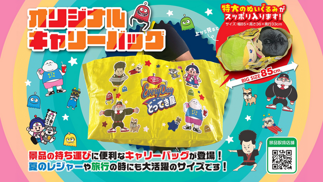 耐久性の高い素材を採用し、ぬいぐるみや景品を持ち帰る際に便利な大容量サイズ。ポップで楽しいエブリデイのオリジナルデザインで、日常使いにもご利用いただけます。