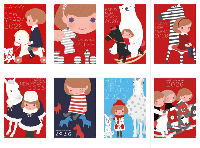 ヨモギ田リョオコさんならではの優しいタッチと、今年の干支である午(うま)をモチーフにしたデザインで、バラエティ豊かなラインナップをご用意。日頃お世話になっている方々への感謝の気持ちを込めて、心のこもった年賀状を選んでみませんか。