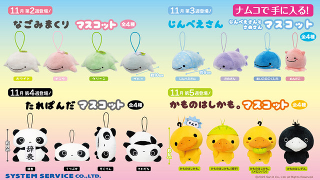 11月は「なごみまくり」「じんべえさん」「たれぱんだ」「かものはしかも。」の4シリーズがラインアップ。今後も人気キャラクターたちが続々登場予定です。2026年1月に登場するキャラクターは、続報をお楽しみに!ナムコであなたの“推しキャラ”をお楽しみください。