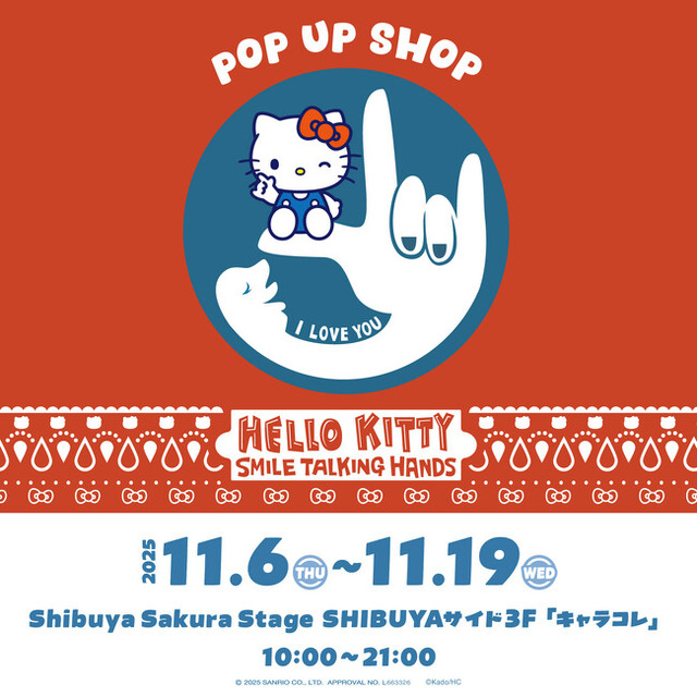 株式会社マリモクラフト(本社:東京都江東区)は手話アートアーティストの「門秀彦」氏と、株式会社サンリオのキャラクター「ハローキティ」のコラボグッズを期間限定のポップアップストア「HELLO KITTY × SMILE TALKING HANDS POP UP SHOP」にて販売いたします。本ポップアップストアは、Shibuya Sakura Stage (渋谷サクラステージ)内の 「キャラコレ」にて2025年11月6日(木)から11月19日(水)まで営業いたします。