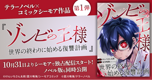 株式会社テラーノベル(本社:東京都港区、代表取締役社長:蜂谷宣人)は、テラーノベル原作『ゾンビの王様~世界の終わりに始める復讐計画~』がコミカライズされ、コミックシーモアでの独占配信を2025年10月31日(金)より開始することをお知らせします。