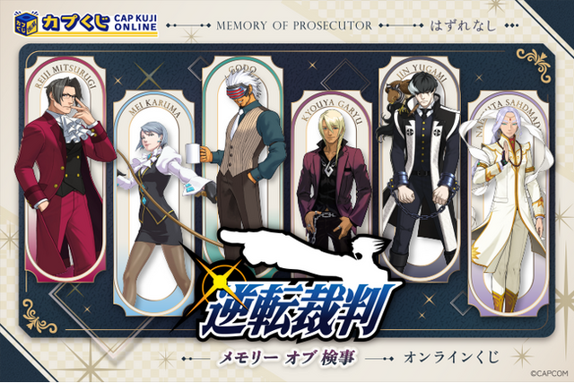 株式会社カプコンが運営するオンラインくじサービス「カプくじオンライン」(以下、「カプくじ」)にて、法廷バトルゲーム「逆転裁判」シリーズより歴代検事をピックアップしたオリジナルグッズを販売いたします。