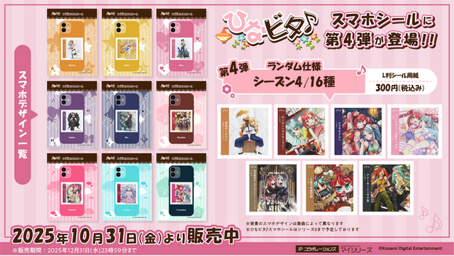 株式会社サムライソード(本社:東京都豊島区)は、KONAMIが展開するキャラクターバンドコンテンツ『ひなビタ♪』のスマホシール第4弾を、2025年10月31日(金)より提供開始します。