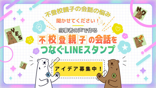 このたびキズキ共育塾は、不登校の当事者、ご家族、キズキの専門家が一体となって、親子のコミュニケーションを円滑にするLINEスタンプを共同で開発します。アンケートを通じて寄せられた“リアルな声”をもとに、「言いたいけど言えない本音」や「不登校親子あるある」を形にしていきます。