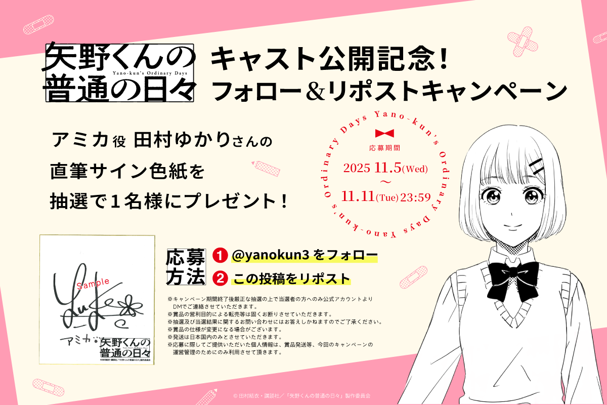 TVアニメ「矢野くんの普通の日々」(講談社「コミックDAYS」連載)に登場した作中作『恋するアミカ』の主題歌「全力★きらめけ初恋」(歌:アミカ(CV:田村ゆかり))のMVが公開!&楽曲配信が決定!!
