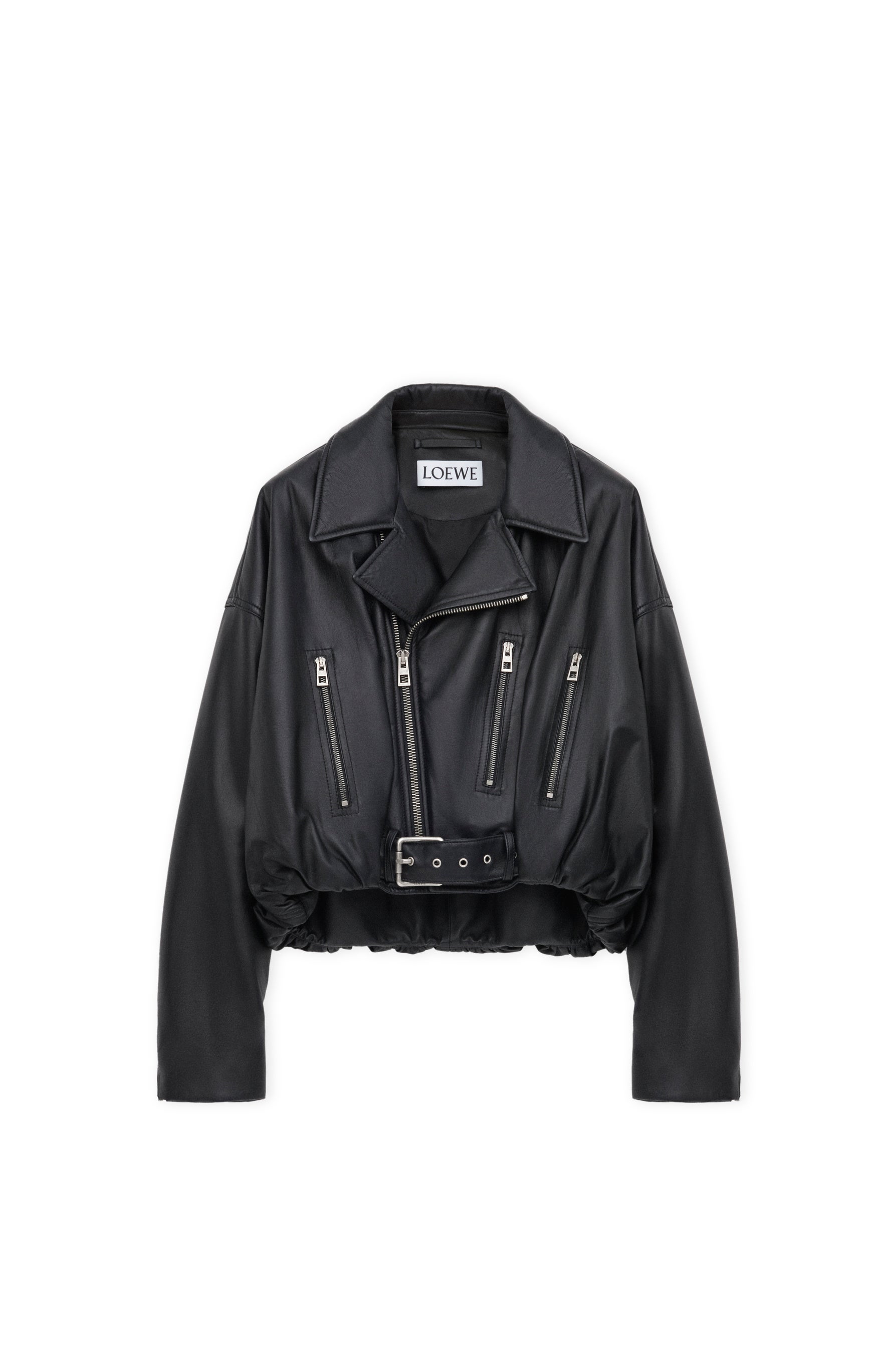 ロエベのコードにおいてレザーが中心的な存在であることは、ウェアにも明確に表れています。ナパラムスキンを採用したクロップド ジャケットは、一体型のベルトやパッチポケット、ボタンを備え、ワークウェアの原型を再解釈しています。一方、バイカー ジャケットは、ボリュームのあるバルーンシルエットへとアップデートされています。さらに、ニットウェアは複雑なパターン、伝統的な技法、手仕事によるディテールを通して、ロエベの美学におけるクラフトマンシップの重要性を改めて際立たせています。