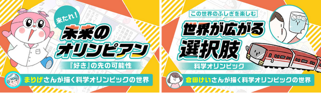 今回のコラボレーション漫画では、SNSで人気の漫画家・まりげさんと倉田けいさんの2名に、それぞれの視点から「科学オリンピックの魅力」や「身の回りの科学を楽しむことから広がる将来の選択肢」をユーモラスなイラストでわかりやすく描いていただきました。