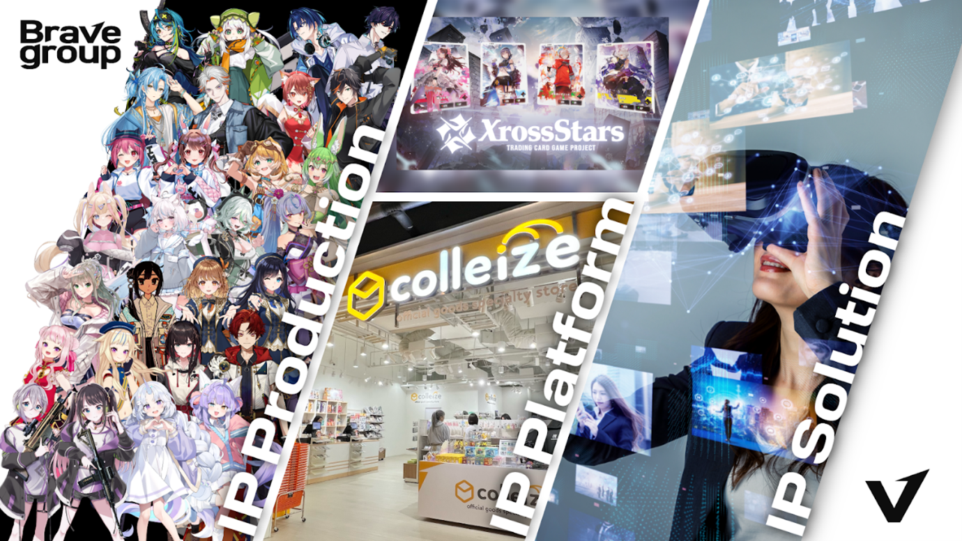 [画像2: https://prcdn.freetls.fastly.net/release_image/70695/22/70695-22-3f86d49fee75cf518af123c68654ec4c-1380x777.png?width=536&quality=85%2C75&format=jpeg&auto=webp&fit=bounds&bg-color=fff ]Brave groupは『世界に、日本の冒険心を』というパーパスを掲げ、『80億の、心をうちぬけ』というミッションのもと、VTuber事業を行うIP Productionをはじめ、同領域と親和性の高いIP PlatformやIP Solutionの領域において複数事業を国内外で展開しています。