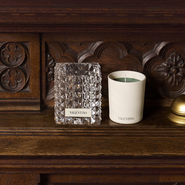 アートオブジェとして構想されたガラス製のキャンドルホルダー「ヴァレンティノ レ ブジョワール」は、ローマ宮殿を象徴するブニャート装飾に着想を得たヴァレンティノのアイコニックなスタッズが特徴です。インテリアの中心的存在になるキャンドルホルダーは、メゾンの芸術性と時代を超えたエレガンスへのこだわりを体現しています。キャンドルだけではなく、メイクブラシホルダーや大切な記念品のディスプレイなど、装飾品としても再利用することができ、ヴァレンティノの世界観を永く表現し続けます。