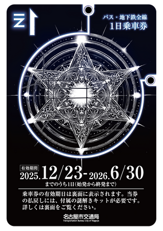 謎解きイベントに参加するのに必要な、謎解きキット、専用一日乗車券も今回のストーリーに合わせたデザインに!名古屋市内に出現する魔法陣を捜索しに行こう!
