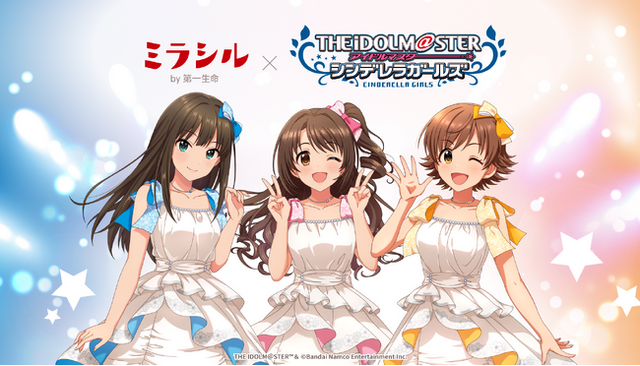 当企画では、「アイドルマスター シンデレラガールズ」のゲーム内のユニット「ピンクチェックスクール」の島村卯月さん、小日向美穂さん、五十嵐響子さん、「トライアドプリムス」の渋谷凛さん、神谷奈緒さん、北条加蓮さん、「ポジティブパッション」の本田未央さん、日野茜さん、高森藍子さんが登場します。ユニット・ソロそれぞれのインタビュー記事や、撮り下ろし写真を使用した壁紙カレンダーの公開、限定アクリルスタンドが当たる「ミラシル by 第一生命」無料会員向けキャンペーンを実施し、さらに多くのお客さま、プロデューサーさん(※『アイドルマスター』シリーズファンの総称)との接点を創出いたします。